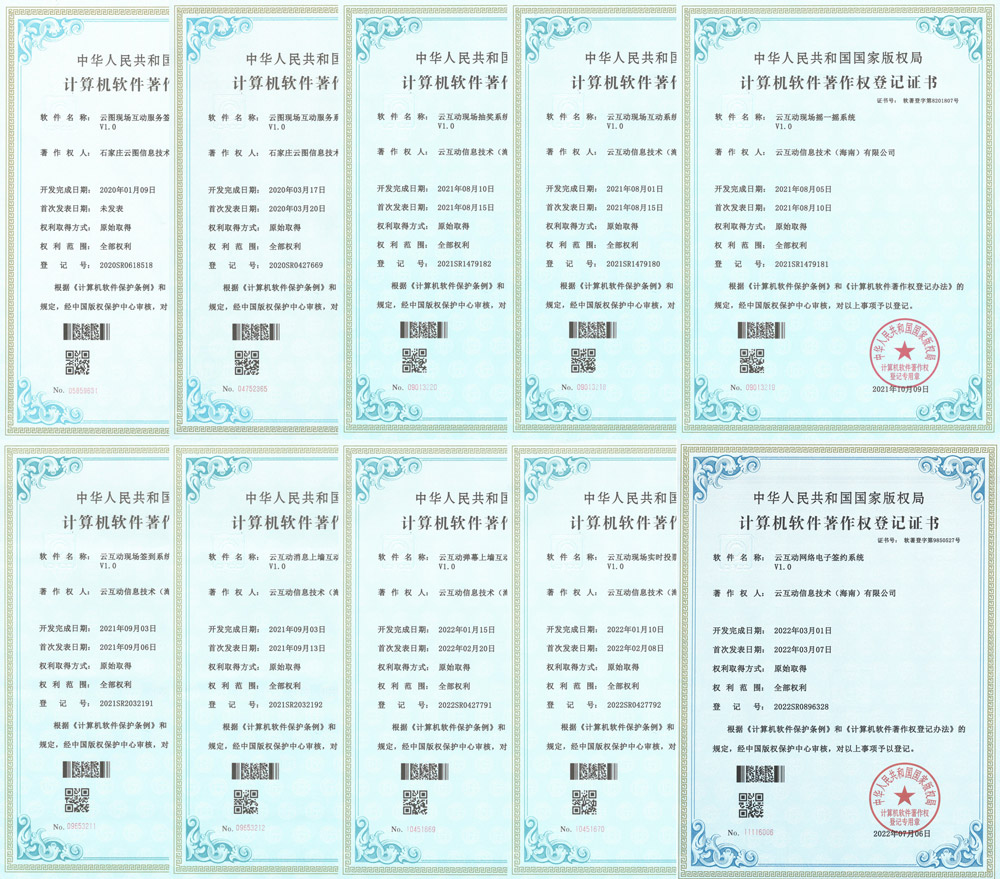 截止目前我司已获得多项现场互动系统相关软件著作权证书